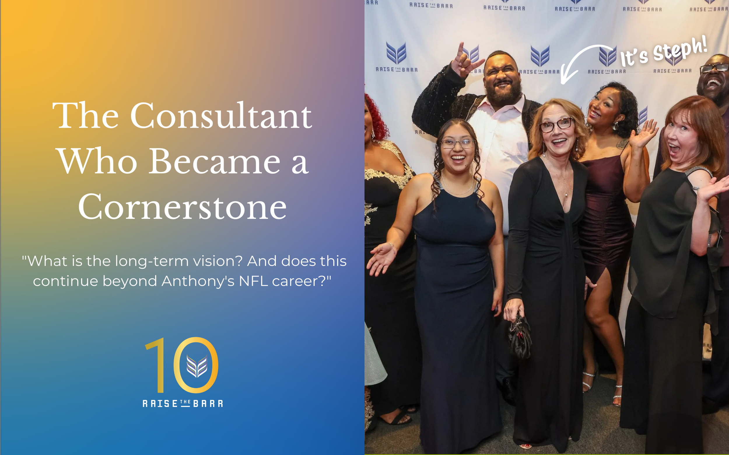 Nearly ten years ago, Raise The Barr was in its infancy: a newly formed nonprofit with modest funding, no full-time staff, and a clear commitment to supporting single-parent students—but without the formal model or infrastructure it would later build. At that early stage, Stephanie Sandler, then a consultant, asked Anthony and Lori Barr a defining question: What is the long-term vision? And does this continue beyond Anthony’s NFL career?